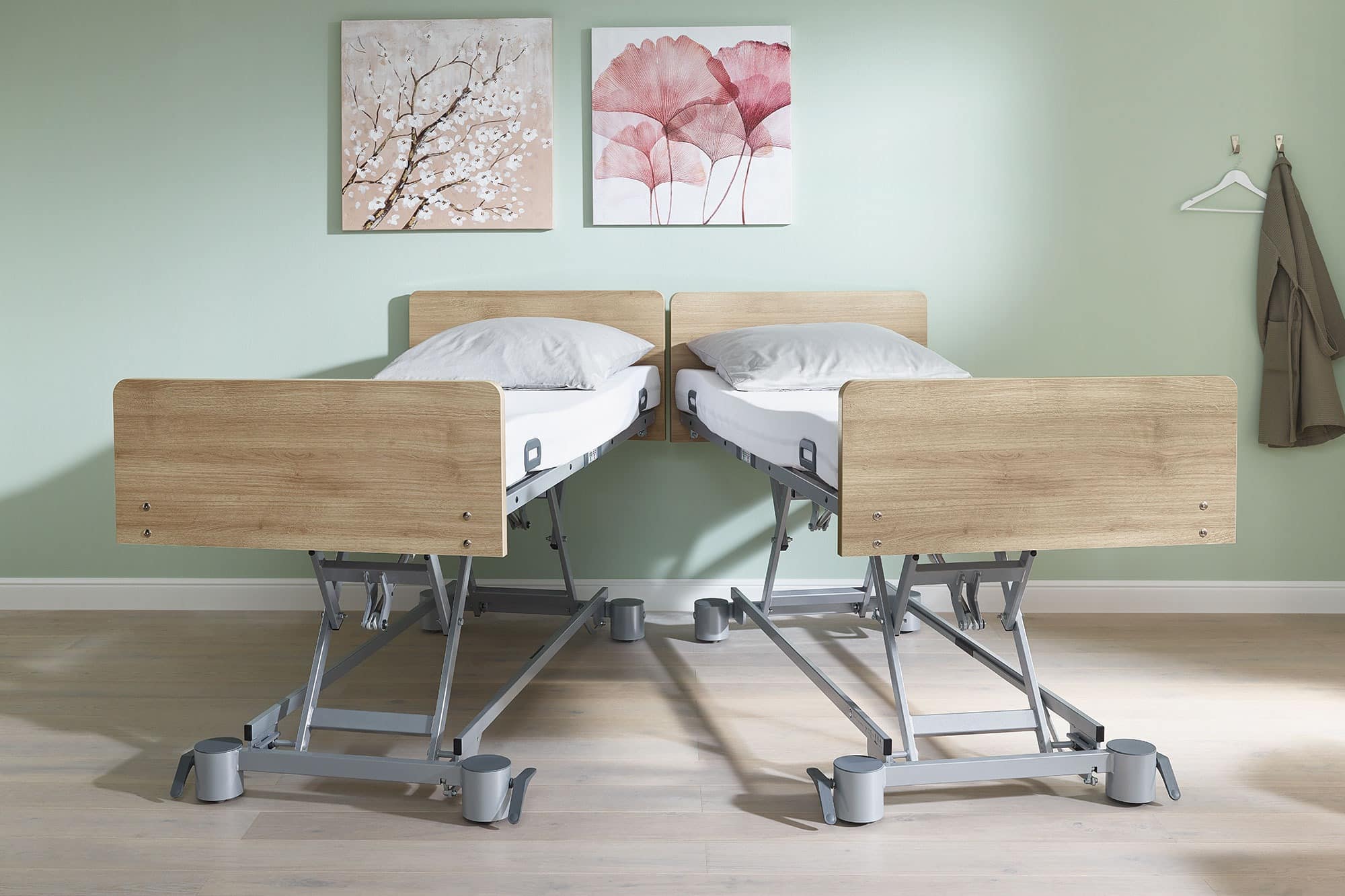Opnieuw deelnemen aan het dagelijks leven met de modelvariant movo. De variant movo van de Libra maakt indruk met de bijzonder goede rijeigenschappen. Het manoeuvreren in krappe ruimtes en kamers met meerdere kamers of het transporteren van het bed naar een andere locatie in de woning zal veel eenvoudiger zijn. Verzorgend personeel en technici worden ontlast en het risico op schade door botsingen neemt af. De goede rij-eigenschappen van de variant movo stelt bedlegerige mensen in staat om ook deel te nemen aan het dagelijks leven. Het bed kan namelijk gemakkelijk naar een gemeenschappelijke ruimte verplaatst worden.